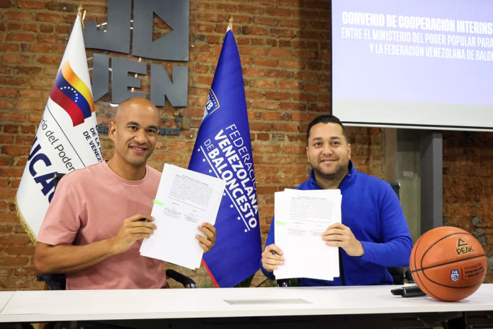 Este viernes 20/02 se formalizó un convenio de cooperación interinstitucional entre el Ministerio del Poder Popular para la Educación y la Federación Venezolana de Baloncesto (FVB), el cual tiene la finalidad de fortalecer la práctica del baloncesto dentro del sistema educativo nacional, promoviendo la masificación deportiva y el desarrollo integral en todos los niveles.